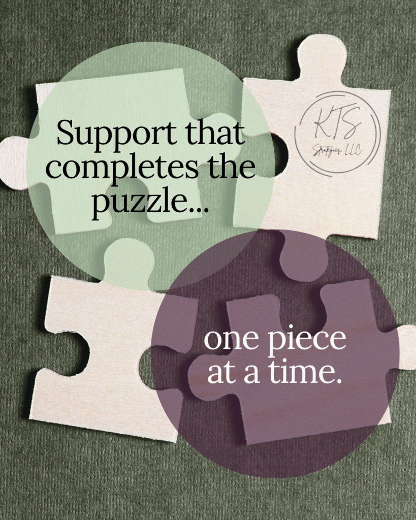 KTS Strategies is a growing team of business support pros with backgrounds in operations, mental health administration, branding, finance, and client experience. We’ve worked inside startups, service companies, and practices, so we know what it’s like to wear every hat.